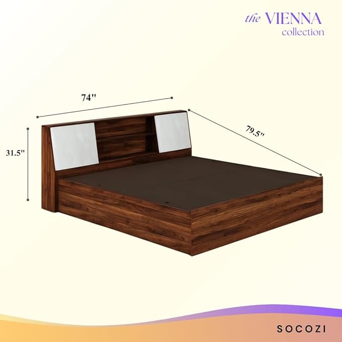 Bed Dimensions: Length 220cm X Width 191cm X Height 100cm | Mattress Size: King (78X72 Inches – Not included) | Material:- Engineered Wood | Finish: Walnut Finish