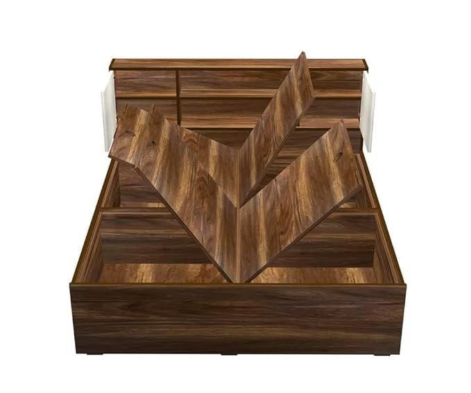Roshani.online Wood King Size Bed with Box Storage | Wooden Double Bed Cot Palang Furniture for Bedroom Living Room (Walnut Finish)